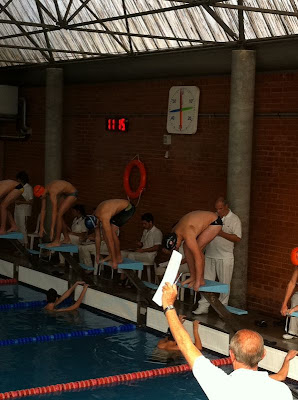 Antes de empezar, los nadadores se concentraron junto a la piscina para esperar sus correspondientes pruebas.